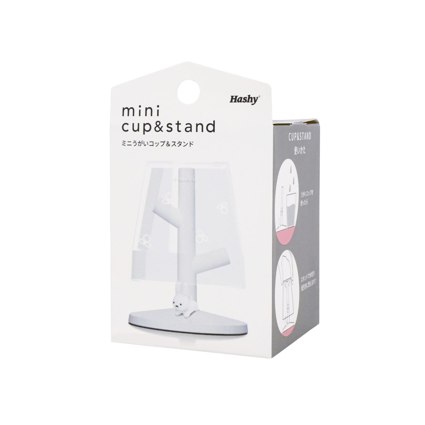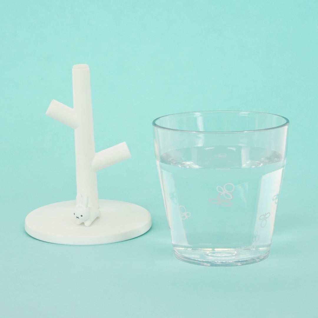 マウスウォッシュやちょっとしたお口すすぎに使いやすいミニ版(通常版の1/3サイズ)に、うさぎのミニフィギュアがちょこんと乗っています。スタンドにコップをかけておくと、飲み口がどこにも当たらないので衛生的に乾燥&保管もできて実用的!