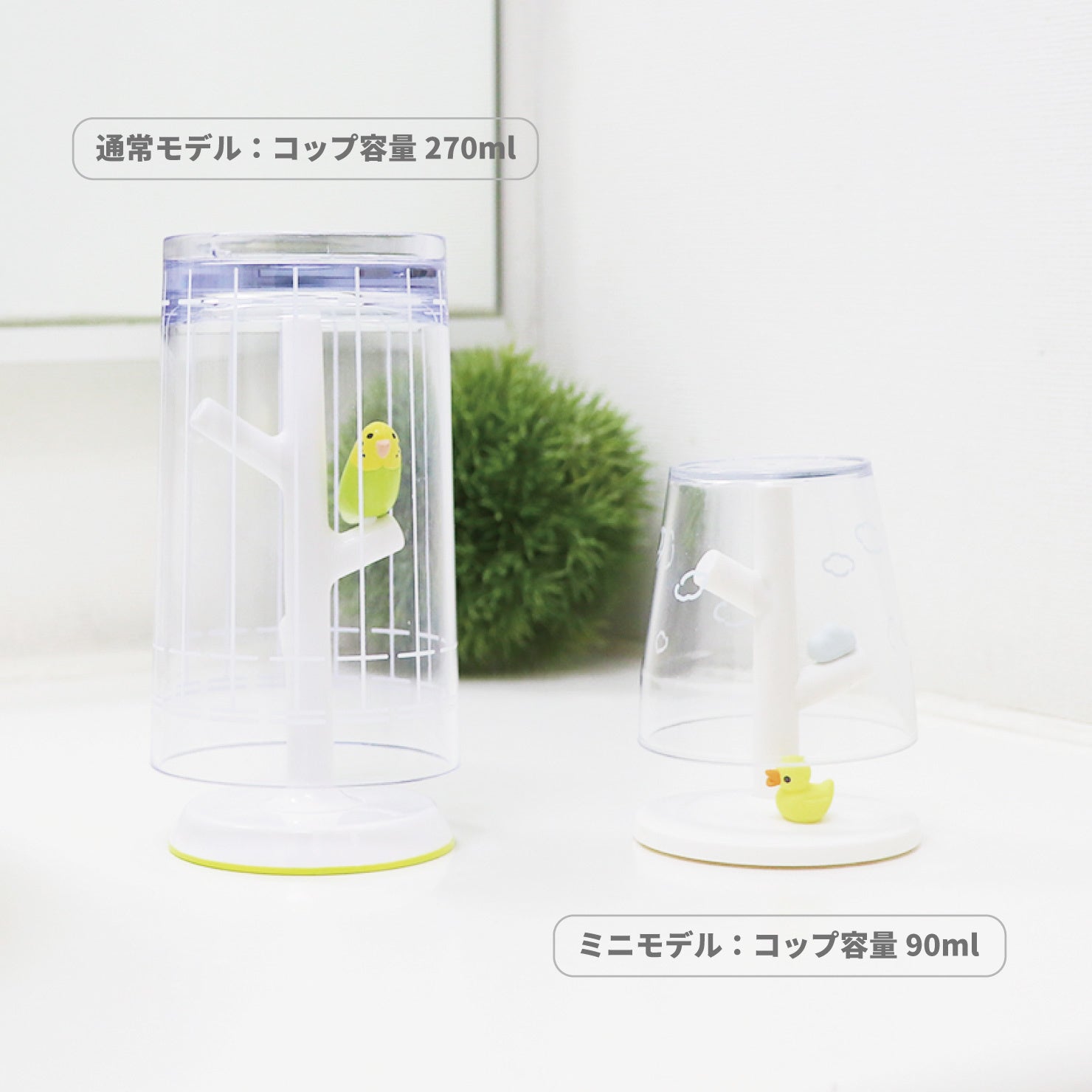 マウスウォッシュやちょっとしたお口すすぎに使いやすいミニ版(通常版の1/3サイズ)に、うさぎのミニフィギュアがちょこんと乗っています。スタンドにコップをかけておくと、飲み口がどこにも当たらないので衛生的に乾燥&保管もできて実用的!