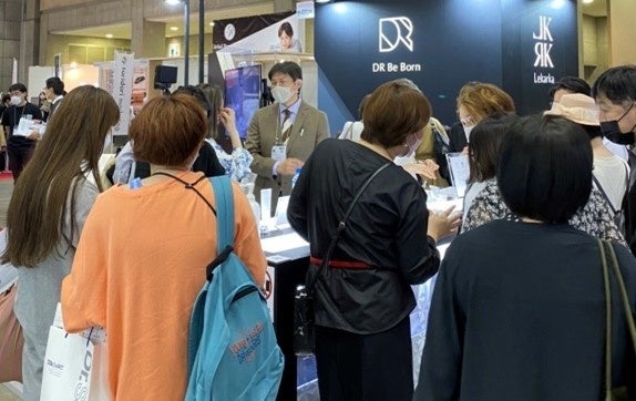 ブース内の「DR Be Born」お試しコーナーも大盛況で、多くの方にピーリングを体感していただきました。また、「DR Be Born」製品に配合されている「幹細胞培養液」や「レチノール」等の説明をレカルカ研究員からしていただいた際には皆様も耳を傾けておりました。