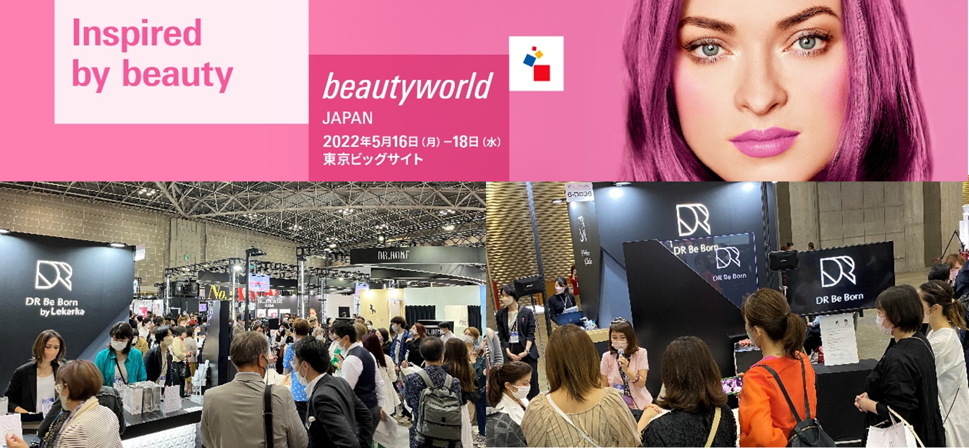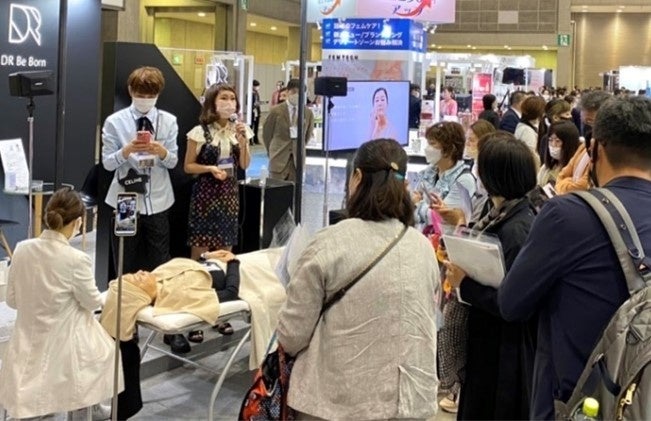 会場では、共同開発者の株式会社レカルカ会長 梅田英姫氏トークショーや、経験豊かなレカルカエステティシャンによる「DR Be Born」を使用したピーリングの施術デモンストレーションも行い、多数の方々に「DR Be Born」製品をご覧いただけました。