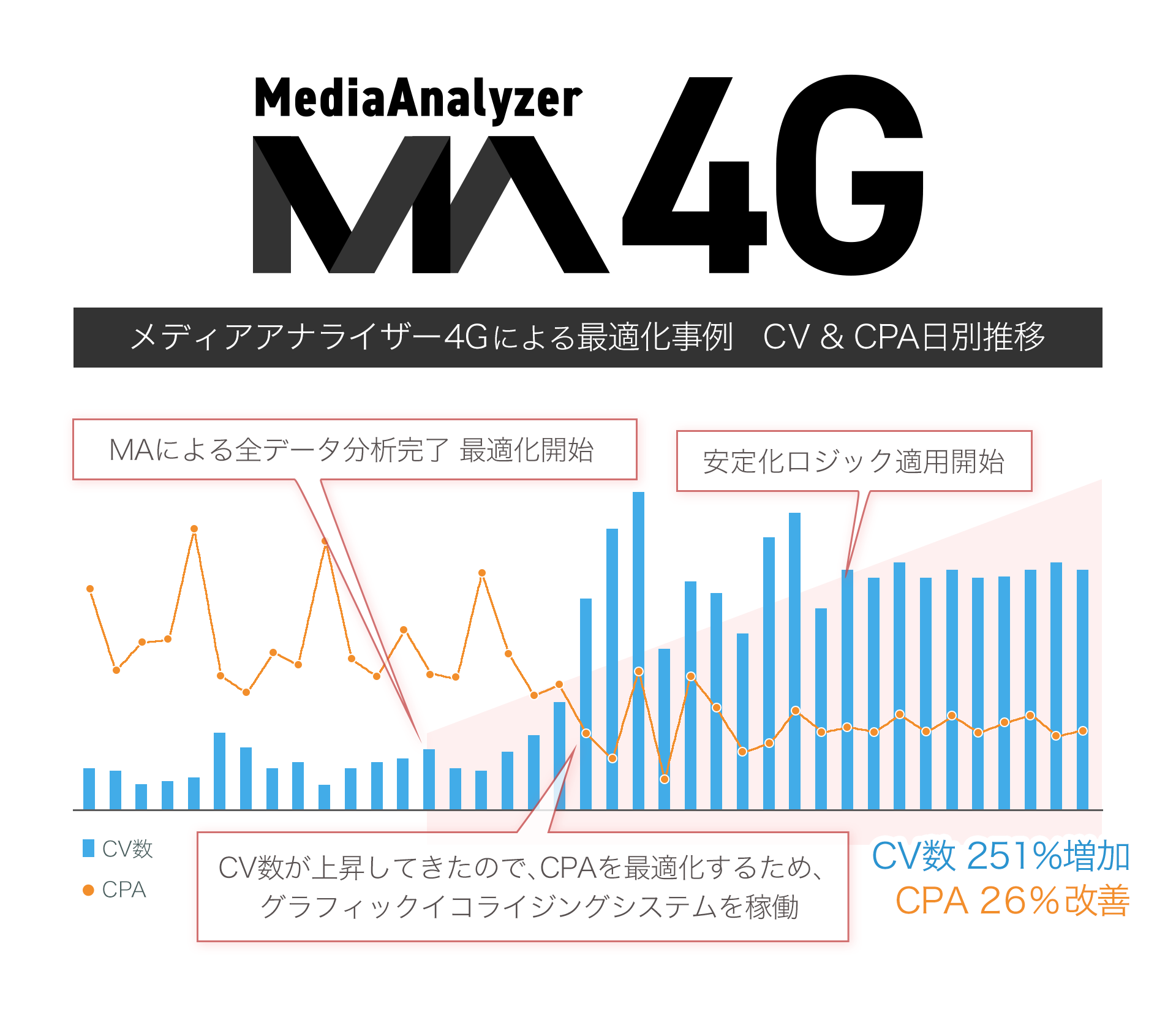 「メディアアナライザー4G」と「グラフィック イコライジング システム」の先行テストでは、CV数(※2)は平均23.2%増加、CPAは平均22.6%改善しています。