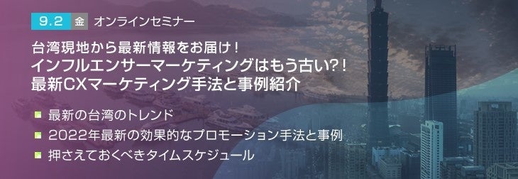 【トランスコスモスオンラインセミナー】台湾現地から最新情報をお届け!インフルエンサーマーケティングはもう古い?!最新CXマーケティング手法と事例紹介を9/2(金)に開催