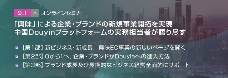 本ウェビナーはDouyinプラットフォームの担当者を招き、最新情報をご紹介します。