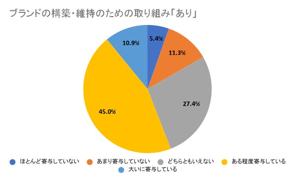 2022年版中小企業白書によれば、ブランドの構築・維持のための取り組みが「ある」と回答した企業の半数超において、ブランドの取引価格への寄与がみられます。一方で、ブランドの構築・維持のための取り組みをしていない企業における取引価格への寄与は大きくありません。