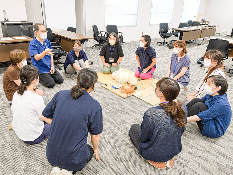 実技研修では、救急救命士の方が各グループを担当してくださり、実践的な演習で判断力、実践力を身につけることができました。