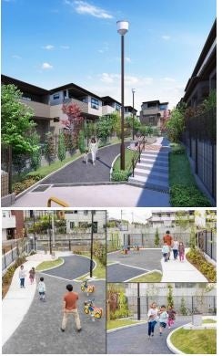 <子どもたちを産み育てやすいデザイン部門> 「リーズン新松戸 パークリンクス ~職住一体時代の子育てランドスケープ~」 (株)中央住宅 戸建分譲設計本部 設計一部 松戸市と協議を重ね創出した子育て世帯のためのランドスケープの提案。 |