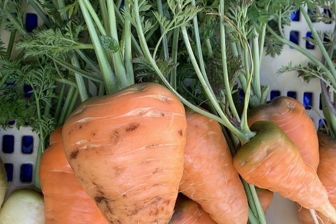 VEGIMOプロは、たとえば5,000円分の野菜セットをご購入いただくと、およそ1,000円分のB品野菜を無料で同封してお届けします。VEGIMOの野菜は一般的な流通の野菜に比べて、形や色、完熟具合も様々です。これは出来るだけ畑で採れた野菜は捨てることなく美味しく召し上がって頂きたい、という想いからですが、それでもどうしても出荷出来ない野菜も多く出ます。私たちは、それらを安く販売するのではなく、飲食店の方で定期でVEGIMO野菜を購入して頂けるお客様に無料でお届けしよう、と考えました。