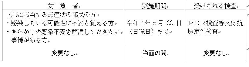 新型コロナウイルス感染症の感染拡大を防ぐため、感染不安を感じる無症状の都民を対象として、知事からの要請に基づく検査事業の実施期間を当面の間延長します。