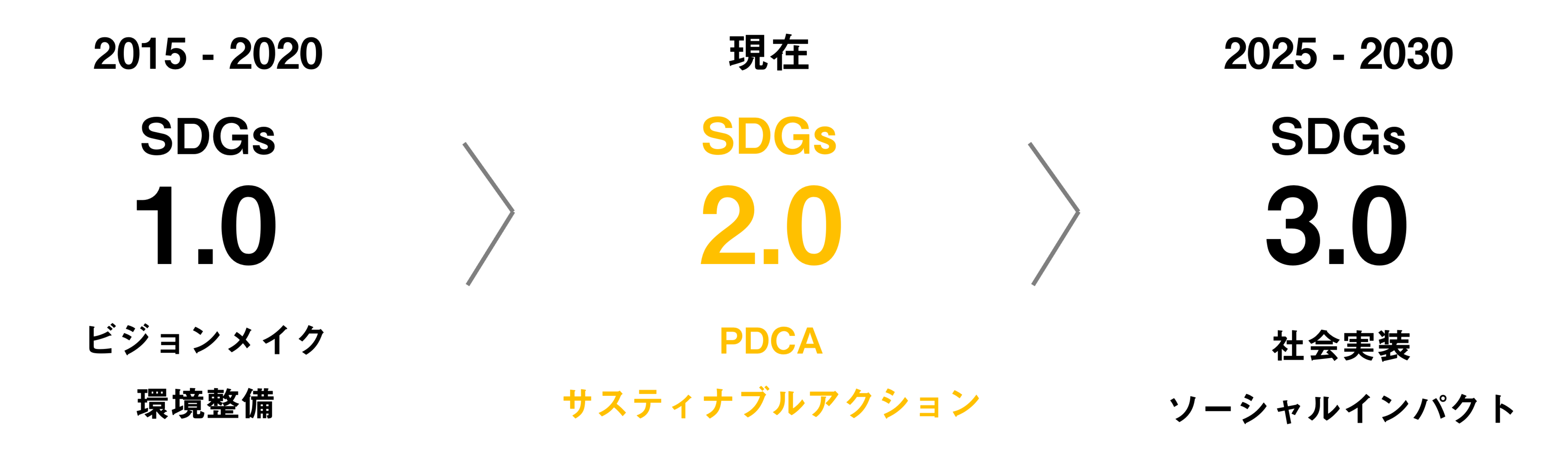 しかし、何事も一発一中、一朝一夕ではいかない中で、企業が2030年に向けて本当に力強くソーシャルグッドの社会実装やソーシャルインパクト創出を実現していくためには、机上の議論(SDGs1.0時代)の先に、試行錯誤やPDCAの期間(SDGs2.0時代)が必要となります。