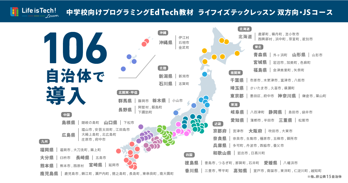 - EdTech教材「ライフイズテック レッスン」全校導入自治体一覧