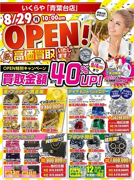 カリスマギャルの華が代表取締役をつとめる株式会社エニワンが、「買取専門いくらや」第1号店を横浜市青葉台に8月29日オープンします。