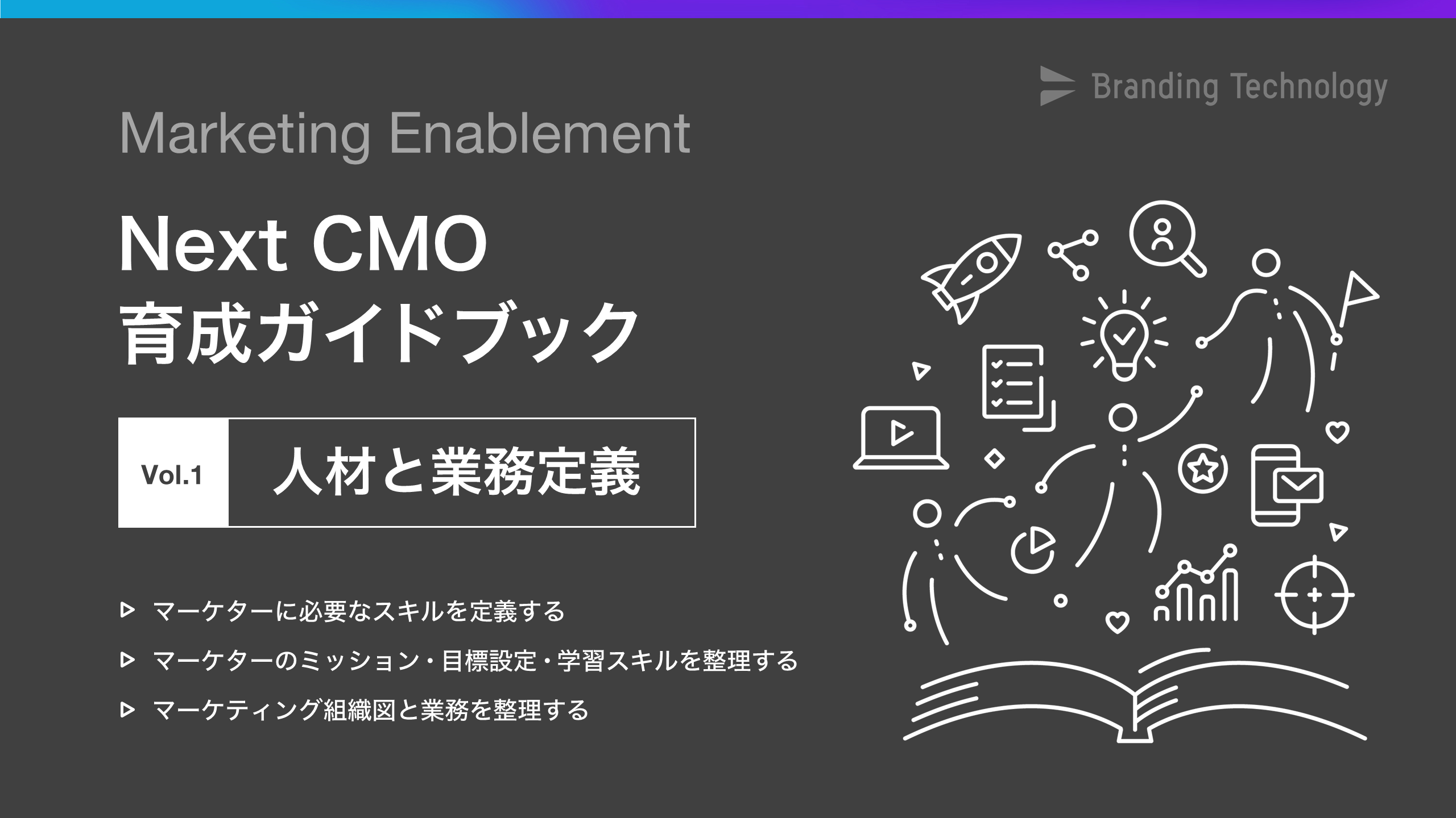 未来のCMO人材を育成するために、必要となるフレームワークを体系的にまとめているガイドブックです。ガイドブックで紹介している考え方と実践方法を実行に移すことで、マーケティングを強化する上での基盤を整えることが可能となります。