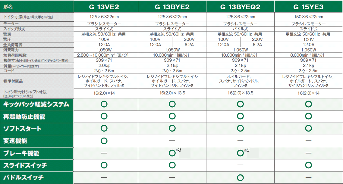 ・G 13BYEQ2 【125mm/200V】 31,900円(税別) ※サイドハンドル付