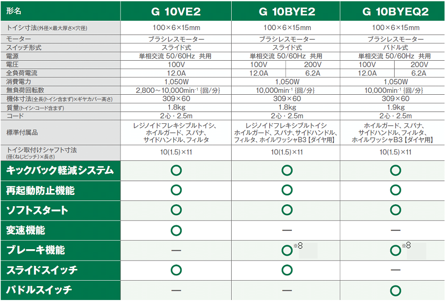 ・G 10BYEQ2 【100mm/200V】 28,600円(税別) ※サイドハンドル付