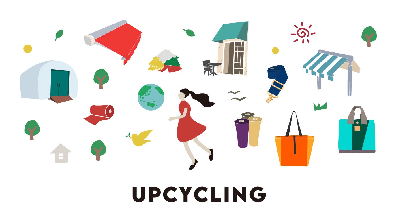 オーニングや屋外テントに使われる素材は、ポリエステル繊維膜などの人工繊維でできており、ポリ塩化ビニル樹脂などの加工がされています。このような生地は、建造物として紫外線や雨風などへの耐久性が非常に高く、大事な荷物を運ぶカバンの素材としても優れています。当社では、製造過程で発生する廃材生地を、株式会社コロニーファクトリーに提供することで、アップサイクルへの取り組みを支援しています。