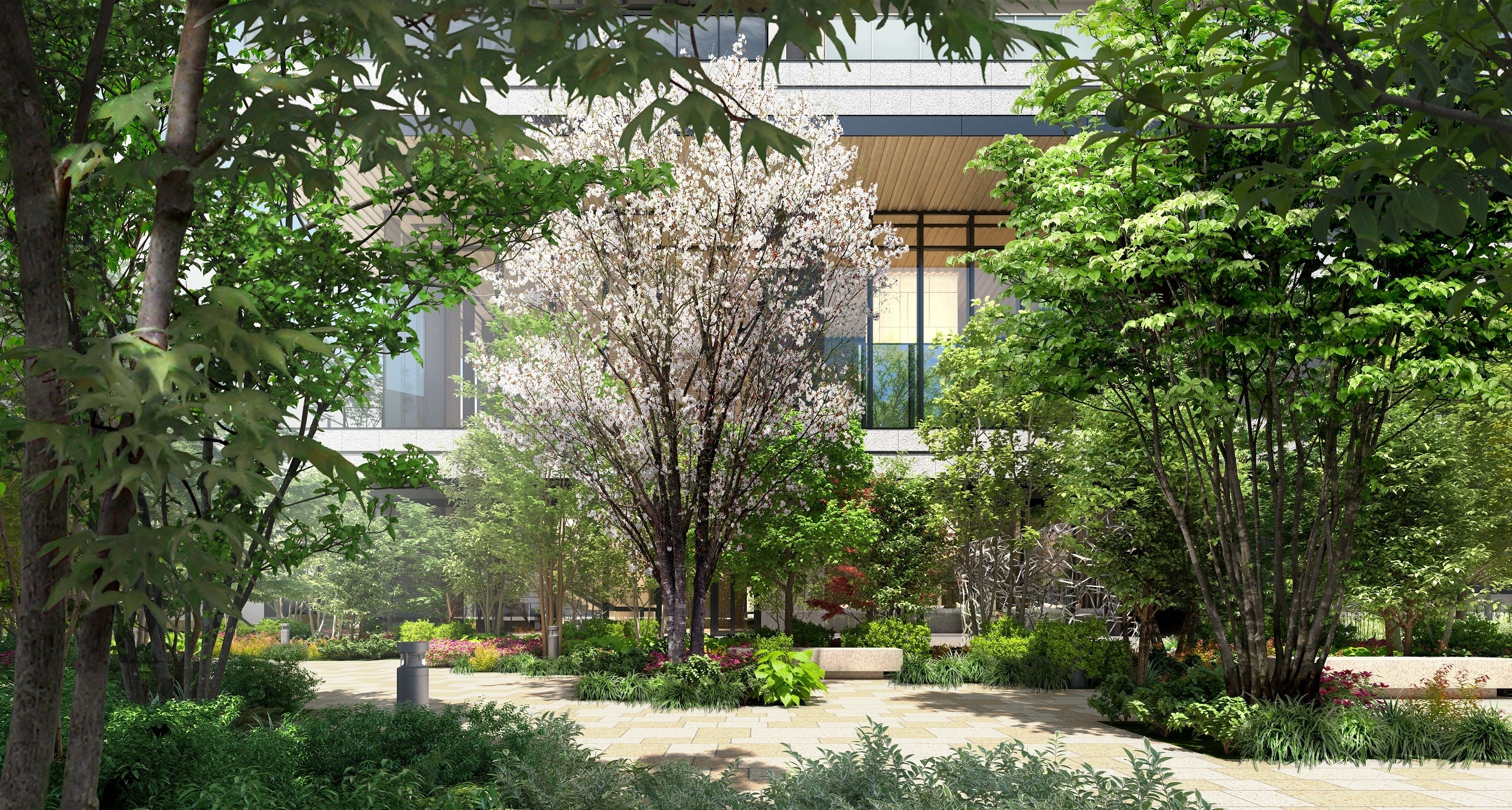 ・敷地内の植栽計画として、本物件に近接する千里緑地の豊かな緑をイメージしています。アトリウムラウンジ内から眺める「ラウンジガーデン」や、多世代交流を育む「コミュニティガーデン」など、表情が異なる4つのガーデンを整備しました。