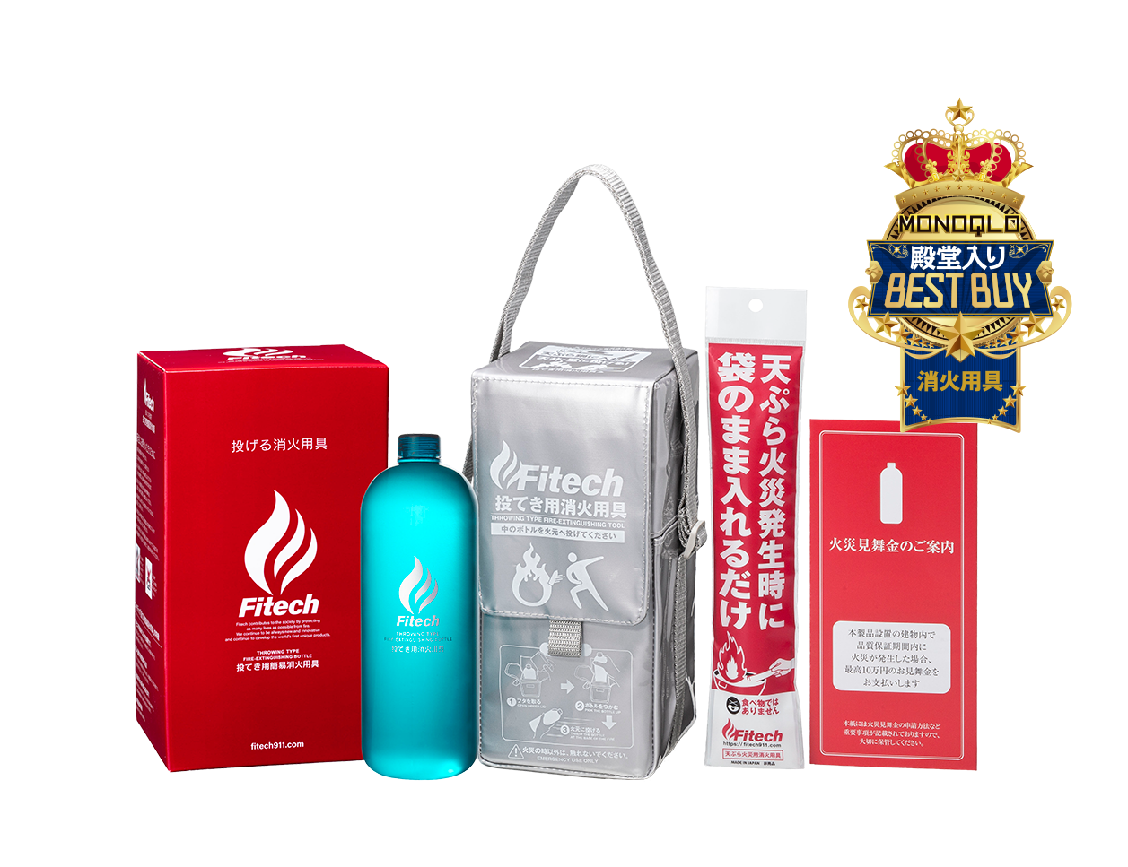「ファイテック投てき用消火用具」は、2017年、2018年、2019年、2020年、2021年と本年2022年の6年連続で、MONOQLO誌の消火器徹底比較テストで「BEST BUY」に選ばれました。