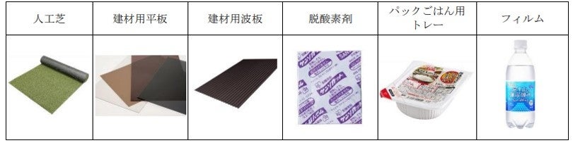 生産アイテム:人工芝、建材用平板・波板、脱酸素剤、