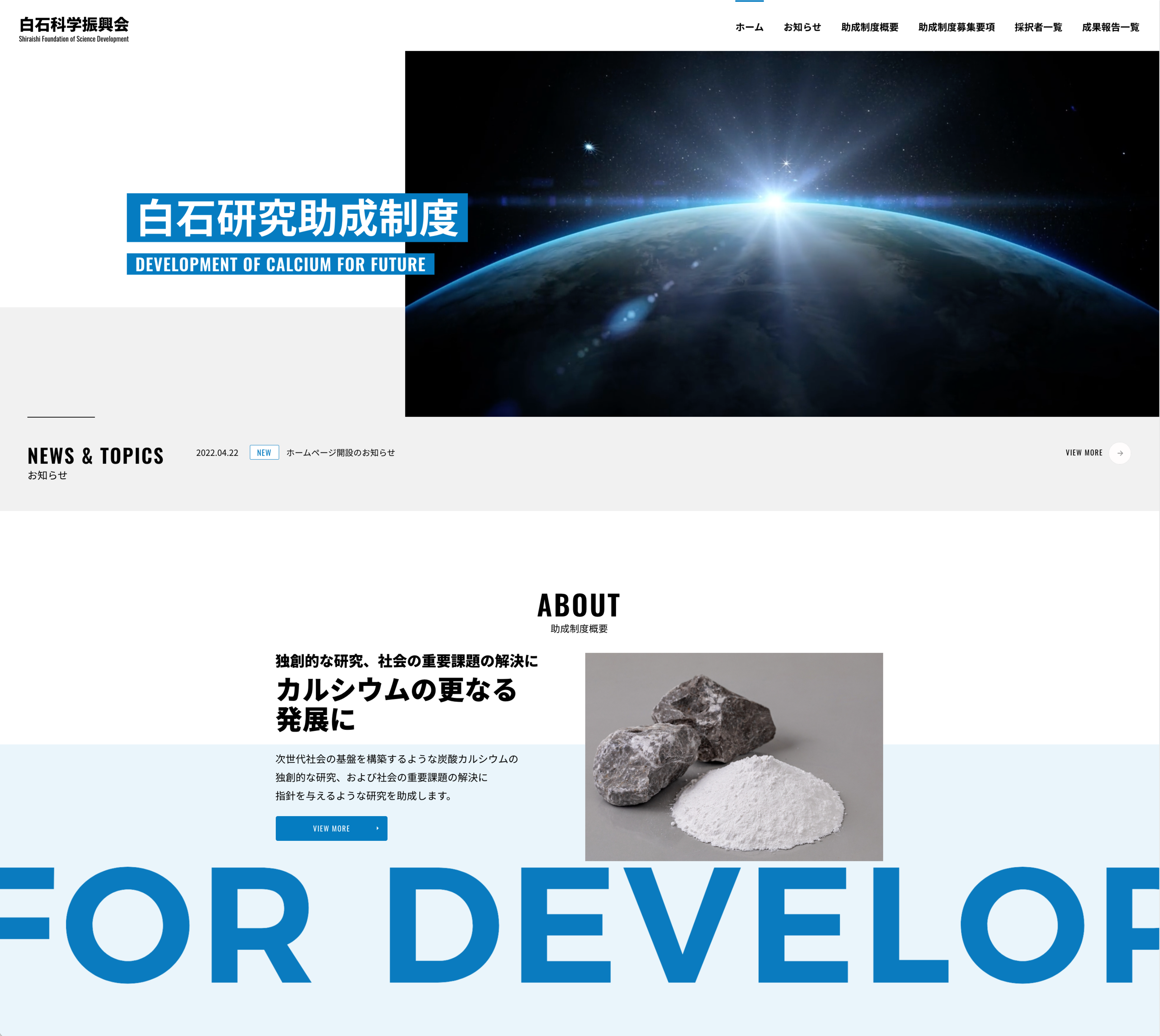 そこで、この度「白石科学振興会」を設立して、カルシウムおよびカルシウム化合物の高度利用とそれに関連する科学と工学に関する研究の振興を図りたいと思います。