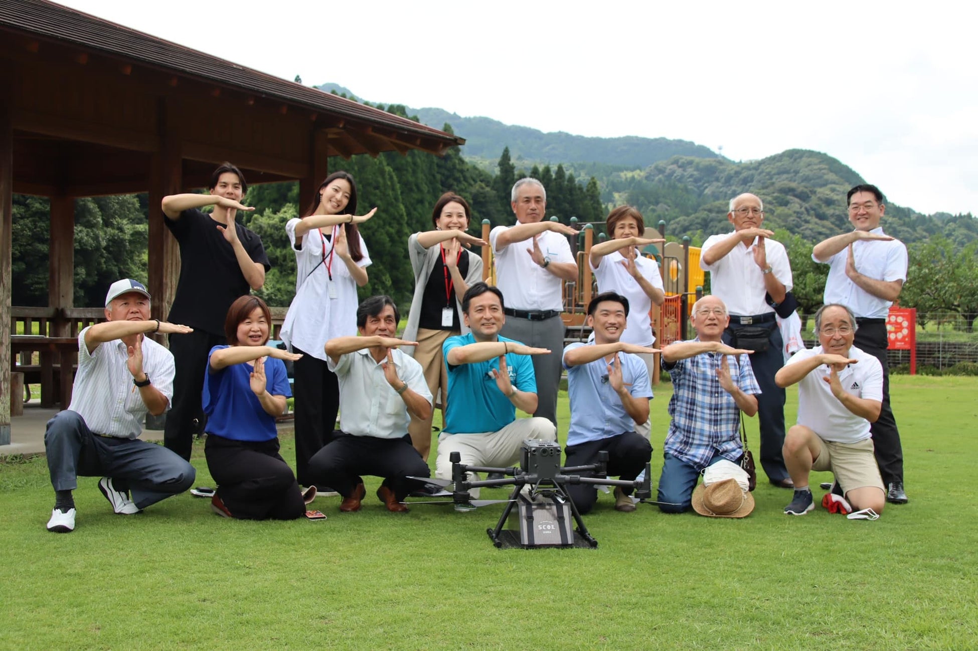 ドローンを活用したまちづくりとして「空の道整備」を行う多久市まちづくり協議会かつやく隊を訪問し、ドローンの飛行見学や意見交換を行いました。