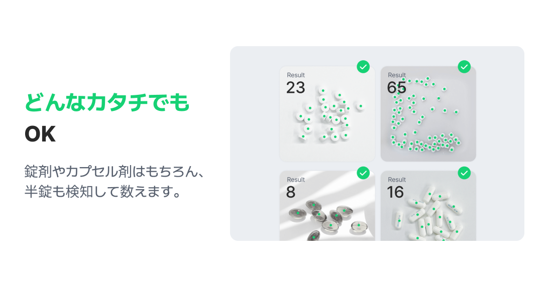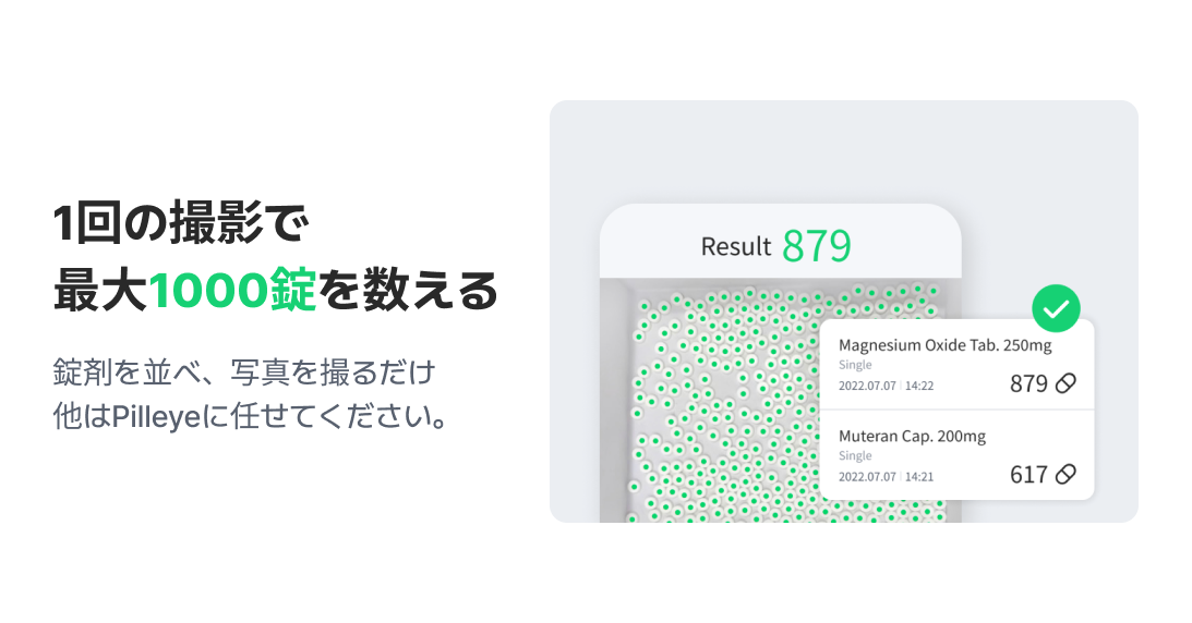 AI錠剤カウントアプリ「Pilleye」は、一見地味に見えるがおろそかにできない錠剤計数業務をサポートするため、どのような形の錠剤でも迅速かつ正確にカウントしてくれるアプリです。