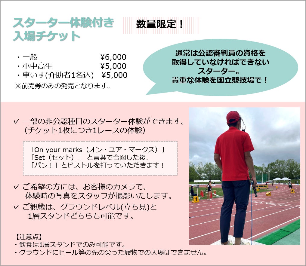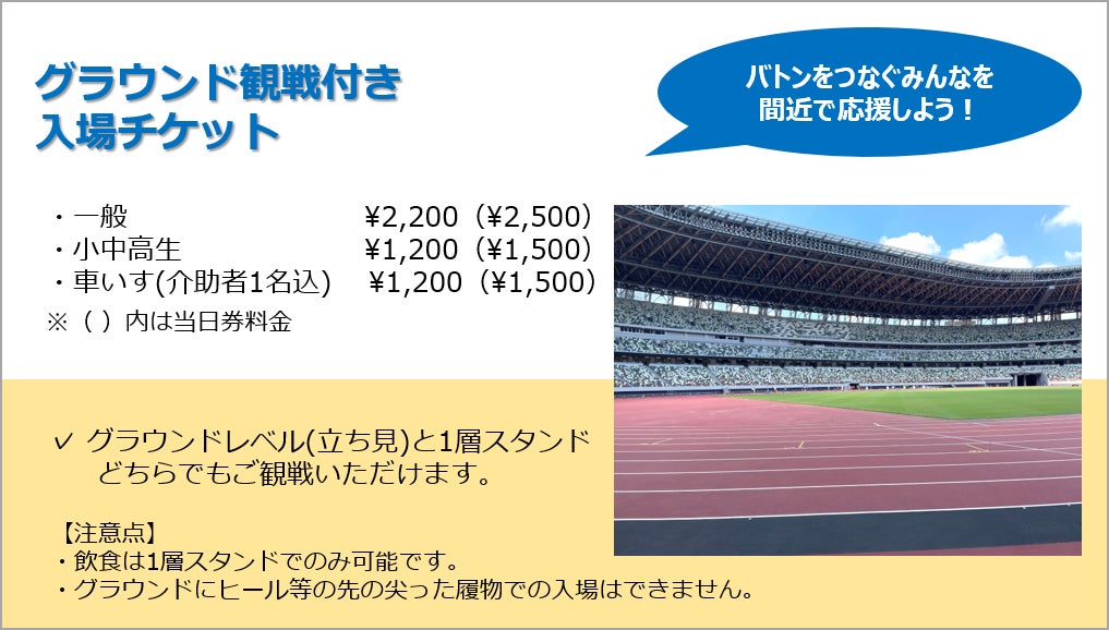 ※スタジアムツアーの開始時刻やスターター体験の実施時間は予定となります。最新の情報はこちら(https://www.jaaf.or.jp/relayfes/2022/ticket/)をご確認ください。