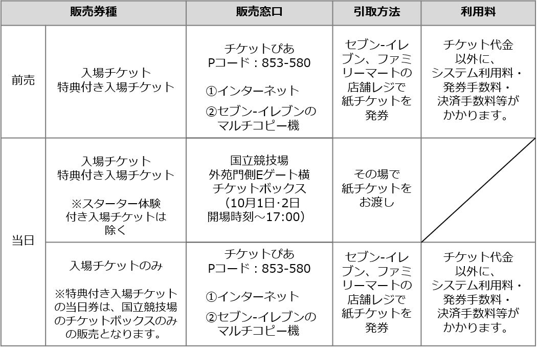 ※「都民の日」の10月1日(土)は、東京都に在住・在学の小・中学生の方は無料でご入場いただけます!大会当日、国立競技場の外苑門側Eゲート横のチケットボックスで、学生証などの東京都在住・在学が証明できるものをご提示いただき、無料チケットをお受け取りください。