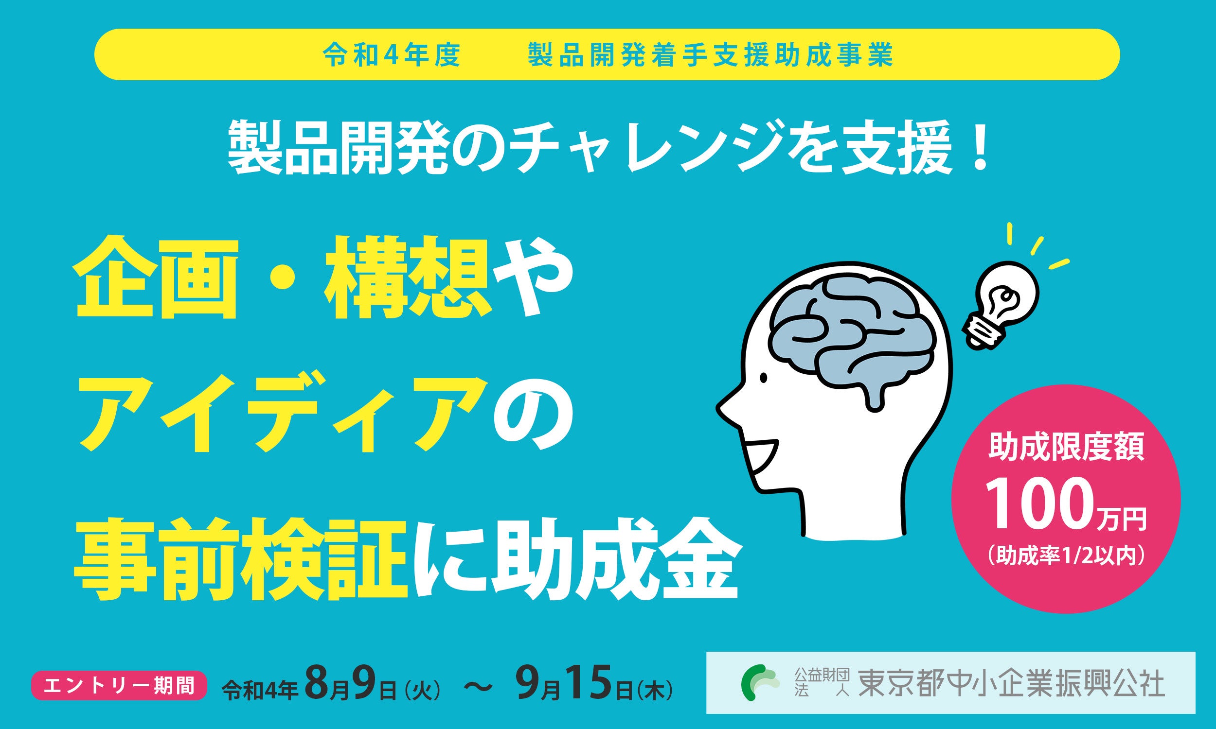 製品・技術開発を行う都内中小企業者等(創業予定者含む)に対し、開発実施の前に考えなくてはならない素材や機能、手法の選定等の技術検討に要する経費の一部を助成します。