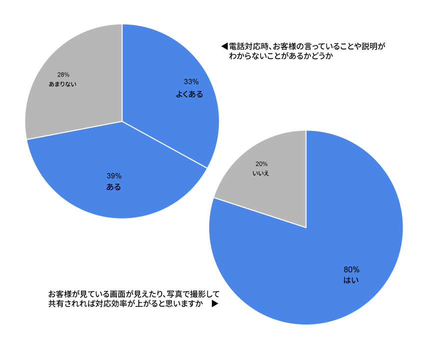 実際、「お客様が見ている画面が見えたり、写真で撮影して共有されれば対応効率が上がると思いますか」との問いに対して、80%が「はい」と回答しています。