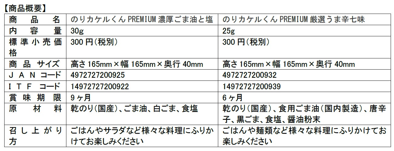 「のりカケルくん」が誕生し約1年半、売上2億円到達し好調であることをきっかけに、さらに美味しさを追求。国産原料を使用し、大人向けにPREMIUM版として新登場しました。
