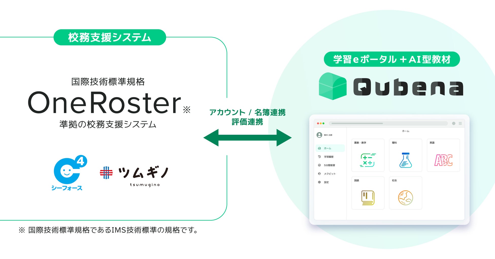Qubenaはそうした現場における課題の大きさを受け、既に業界トップシェアの校務支援システムである株式会社EDUCOMが提供する「C4th(シーフォース)」との連携を進めておりますが、業界団体である一般社団法人日本IMS協会において技術標準規格として現在検討されている「OneRoster® CSV / Japan Profile」に対応することで、他の校務支援システムとのスムーズな名簿連携を実現してまいります。(*)