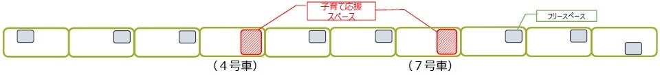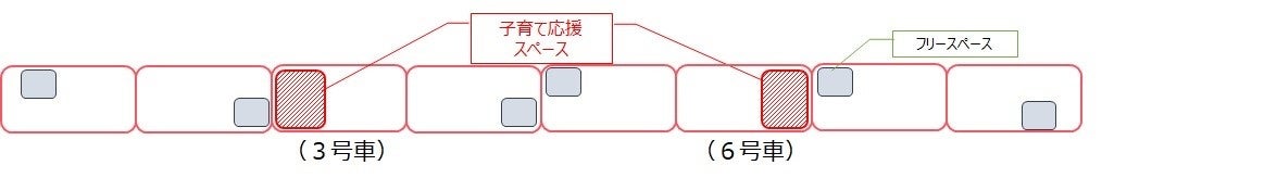 「子育て応援スペース」は、小さなお子様連れのお客様だけでなく、お年寄りや車いすをご利用の方など、どなたでもご乗車いただけるスペースです。皆様のご理解とご協力をお願いいたします。