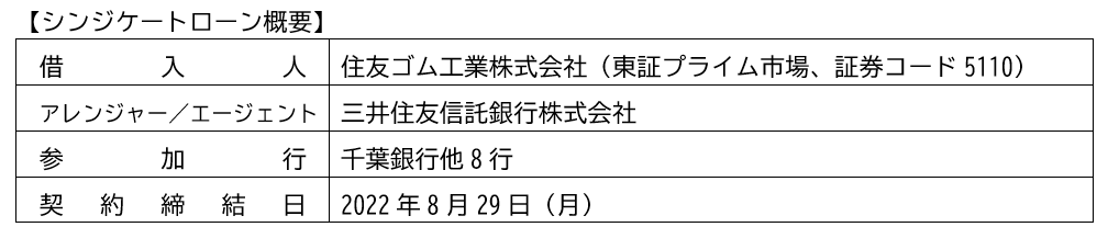 千葉銀行(頭取 米本 努)は、2022年8月29日(月)、住友ゴム工業株式会社(代表取締役社長 山本 悟)に対する、シンジケーション方式の「ポジティブ・インパクト・ファイナンス」に参加しましたのでお知らせします。