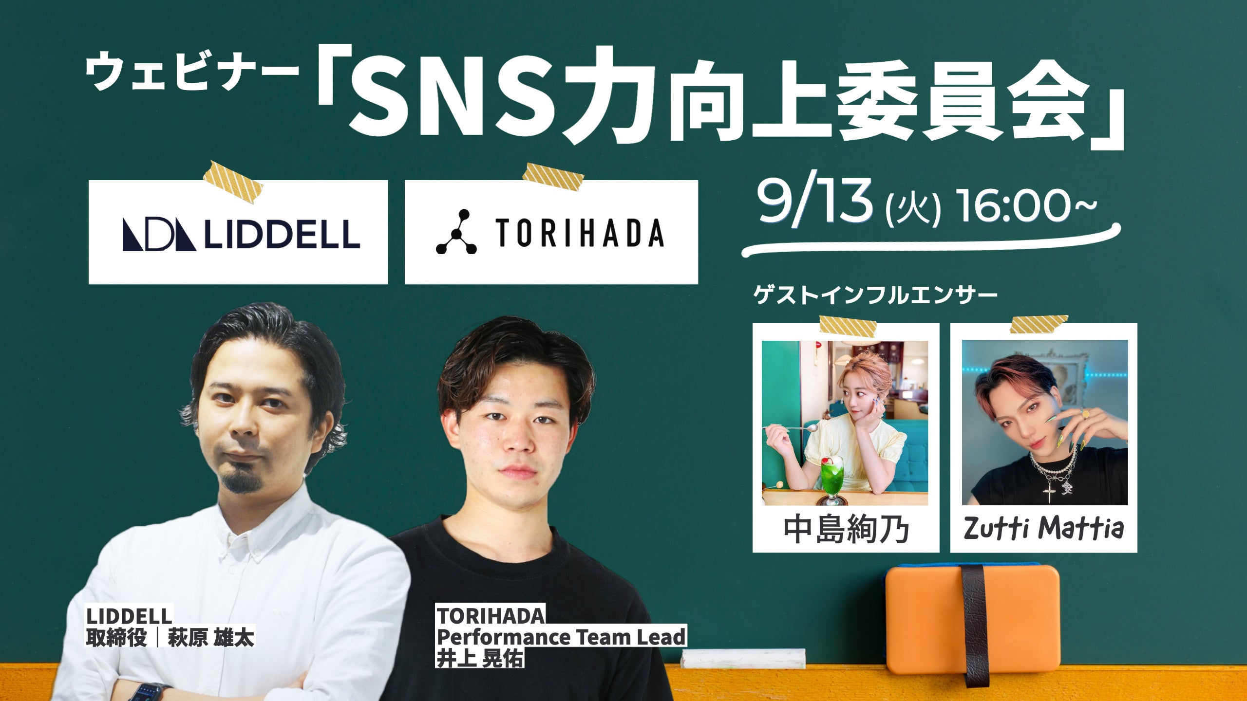 クリエイターを活用したショートムービーマーケティング事業を行う株式会社TORIHADA(本社:東京都渋谷区、代表取締役:大社武)と、インフルエンサーマーケティング事業を展開するLIDDELL株式会社(本社:東京都港区、代表取締役:福田 晃一、以下リデル)は、InstagramとTikTokの違いを活かした消費者とのコミュニケーションをテーマにしたオンライン無料セミナー「SNS力向上委員会」を2022年9月13日(火)16:00~17:00に共同開催いたします。