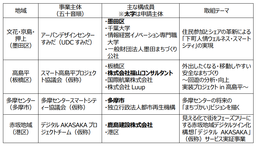 また、本事業では、都内各地でまちのスマート化が促進されるよう、支援プロジェクトの実施を通して、他の地域でも参照できるようなモデルの創出につなげていくことを目指しています。