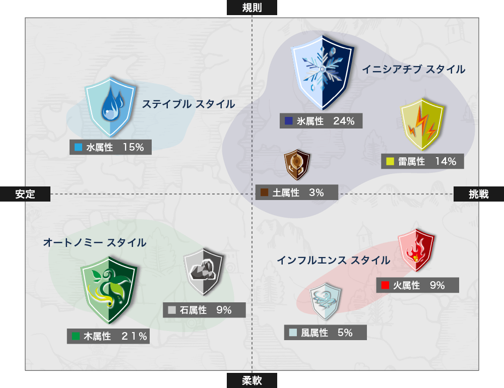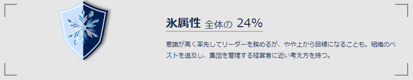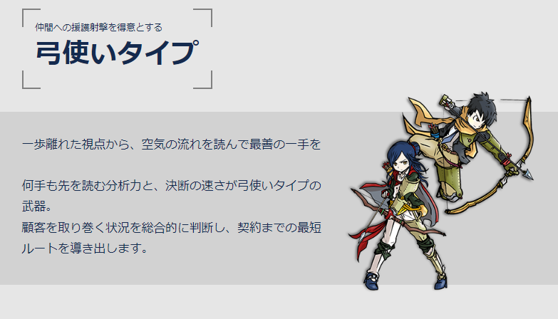 過去の診断結果から、最も頻出する営業戦士タイプは「氷属性×戦士タイプ弓使い」の組み合わせでした。
