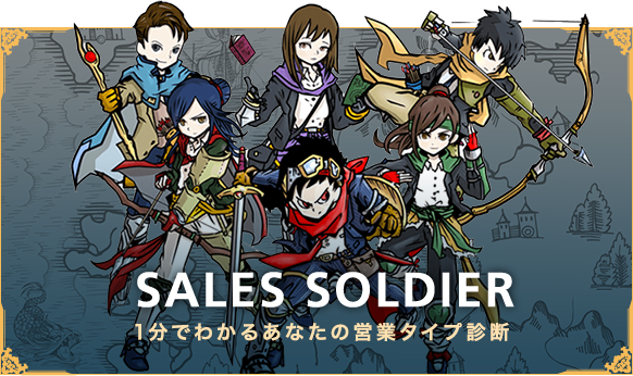 SALES SOLDIERは19個という少ない設問数で人物特性を診断しますが、設問設計は営業職採用に特化した適性検査「SALES SCORE」(セールススコア)の設問をもとにおこなわれています。