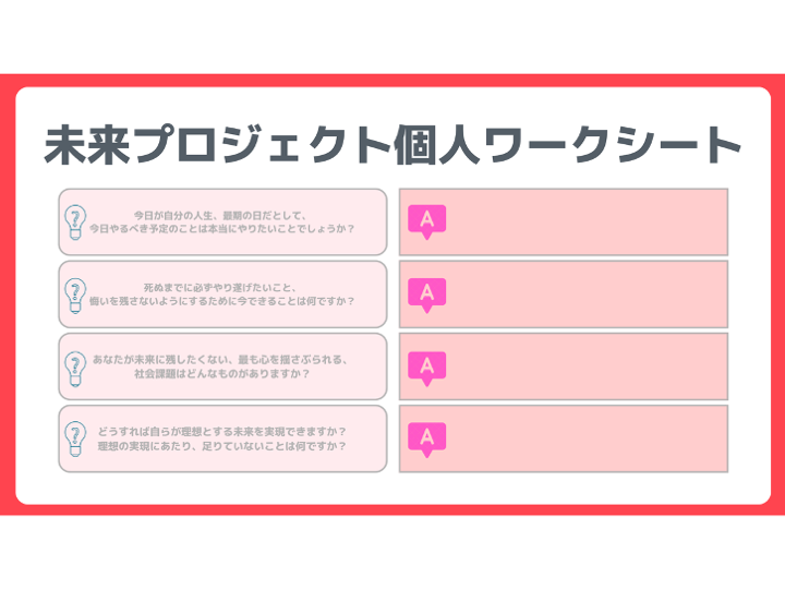 まだまだ途上にはありますが、未来を見据え、少しでも後悔が減る人生を送って欲しい、そして、自らもそうした日々を過ごしたい。そんな思いから推し進めている取り組みになります。