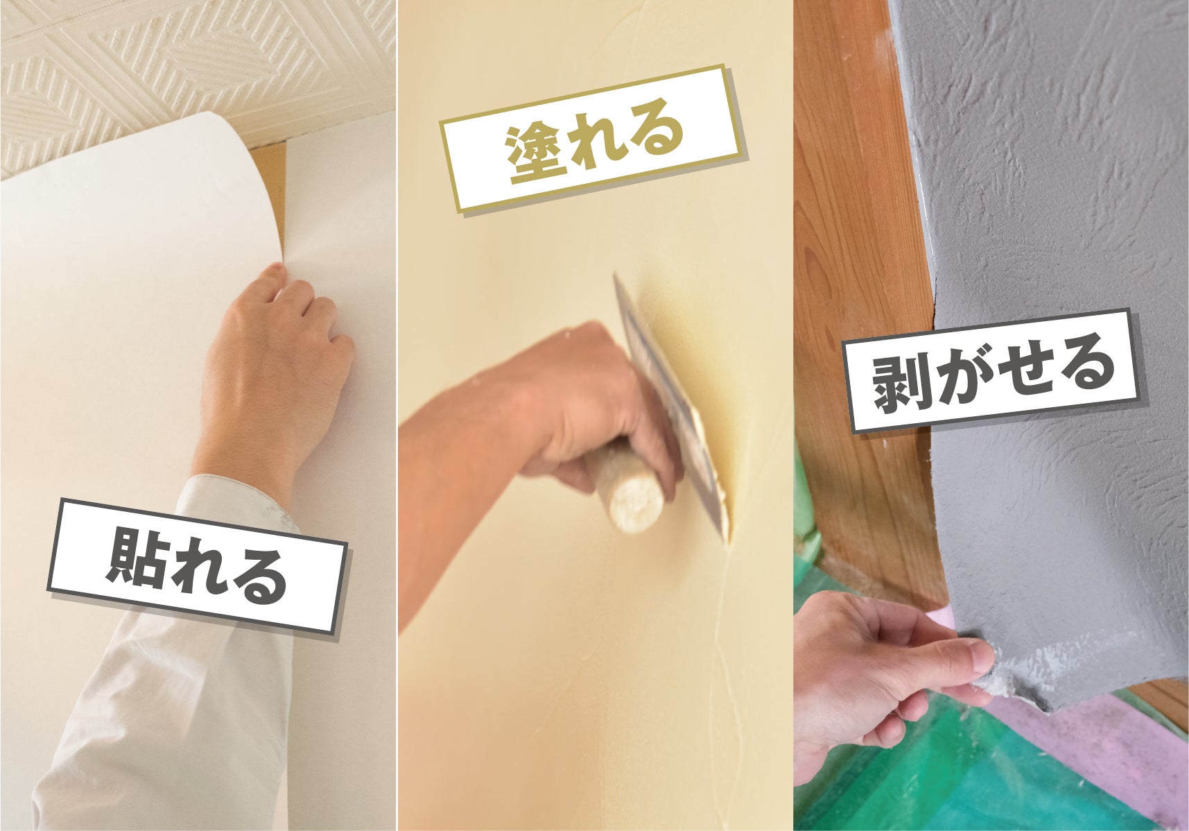 ほとんどの室内壁は、壁紙や漆喰の下にせっこうボードがあります。賃貸物件の壁を原状回復するには、一度せっこうボードの状態に戻すことが多いため、漆喰をシートごと簡単に剥がせるようにし、施工の際も面倒な糊付け作業や下塗り作業を省けるようにしました。漆喰を塗っても重さで剥がれず、剥がしたい時には簡単に剥がせるこの矛盾を実現させるため、粘着剤やシートの材質を追求し、研究を重ねました。