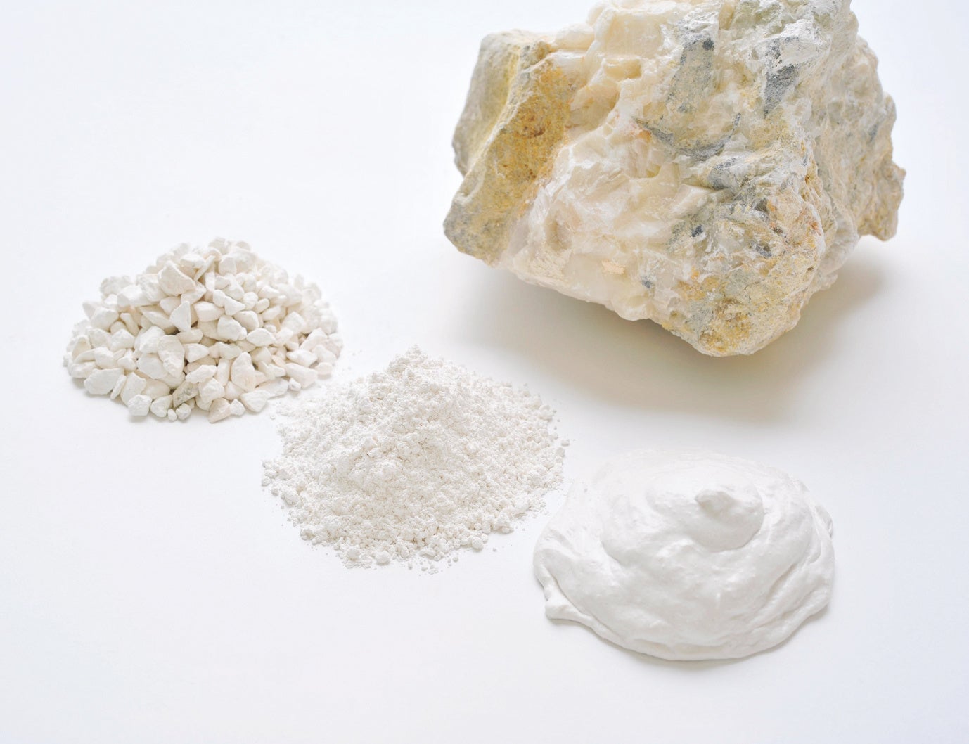 漆喰とは、消石灰(水酸化カルシウム)を主原料とした、コテで塗る塗り壁材のこと。石灰石は元はサンゴ礁で、このサンゴ礁が地殻変動によって隆起し、陸地になったものが石灰鉱脈です。そこから石灰石が採掘され、焼成・消化を経て生まれたのが消石灰です。弊社のある栃木県佐野市は全国有数の石灰石原産地であり、その鉱山からいただいた天然資源をもとに、漆喰を製造しております。