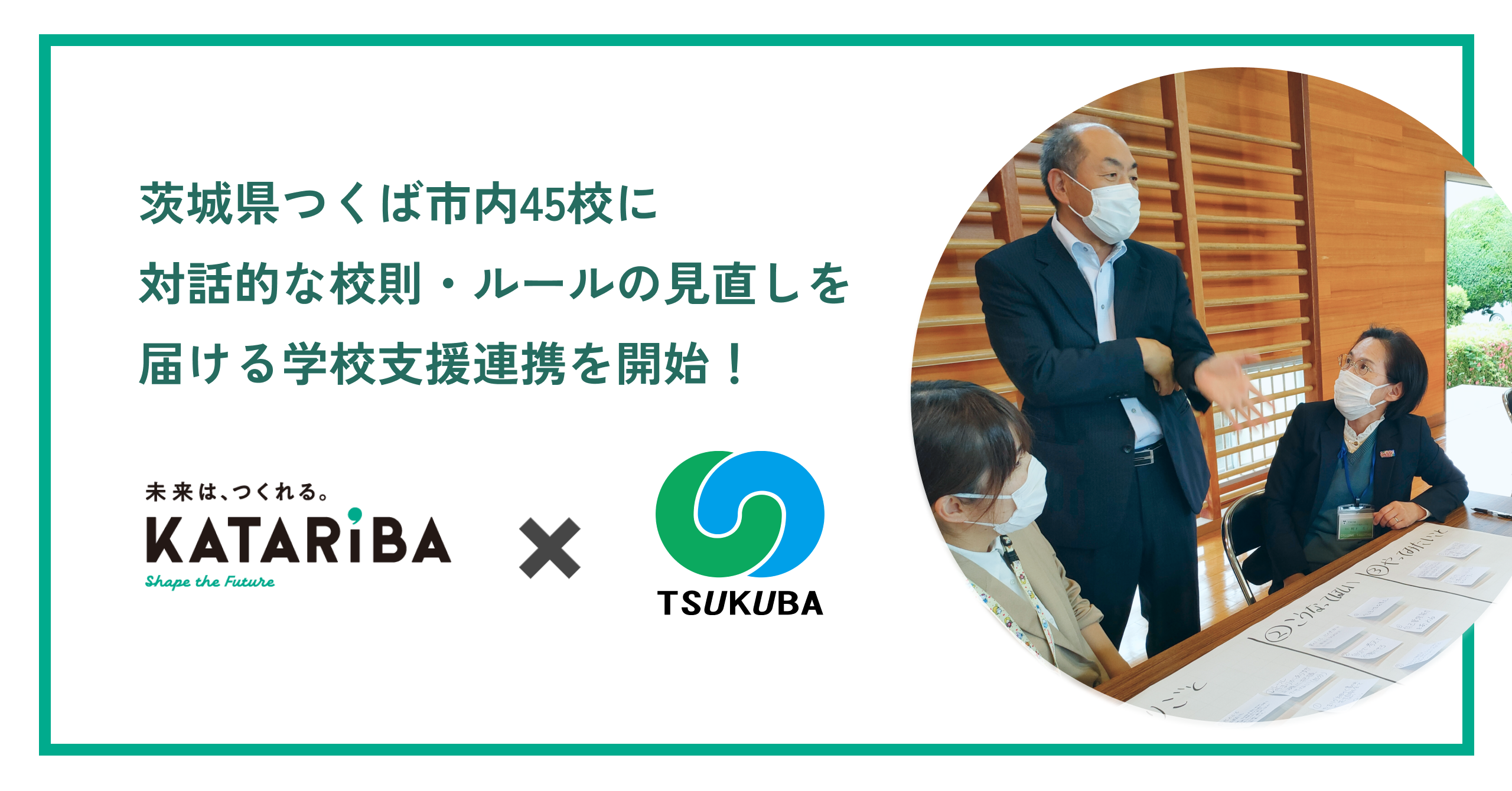 学校内で生じたあらゆる課題を生徒が主体となり解決するような、自律した市民育成に取り組むための対話的な土壌づくりを実施していこうとするつくば市と、「みんなのルールメイキング」プロジェクトを行っているカタリバが出会い、このたびの学校支援連携が開始することとなりました。