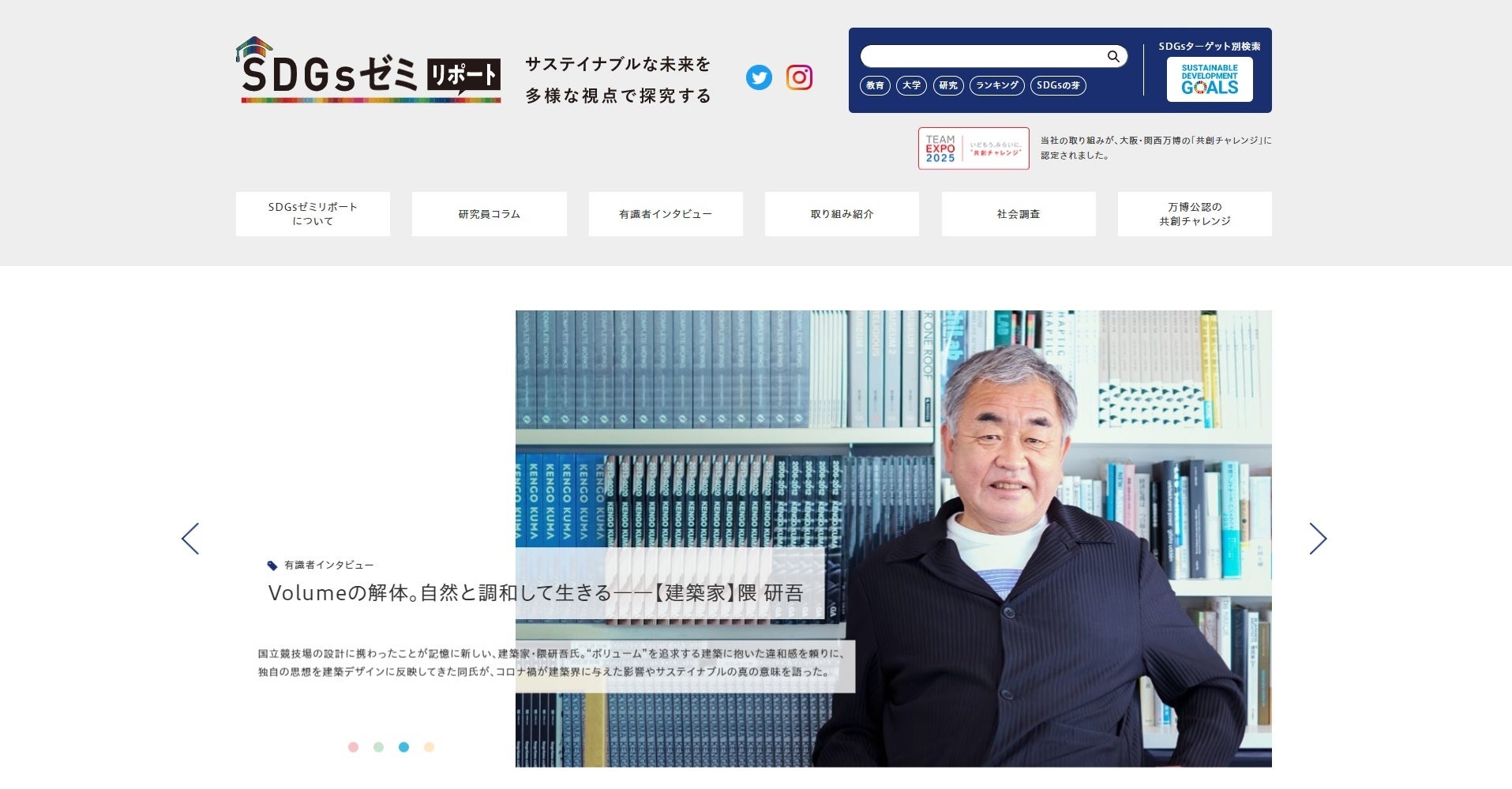 SDGsを多様な視点で探究し、サステイナブルな未来を創るための「考えを深める」Webメディア。有識者へのインタビュー記事のほか、17のゴール・169のターゲットに関する時事や身近な話題などさまざまなテーマに焦点を当てたコラムを株式会社WAVEが編集のうえ、発信しています。