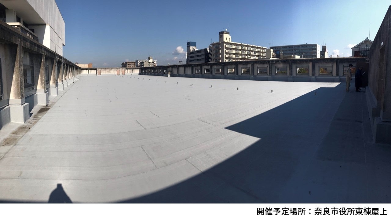 ◇奈良市役所東棟屋上の広大な空間が、期間限定で子どもたちの遊び場になります。