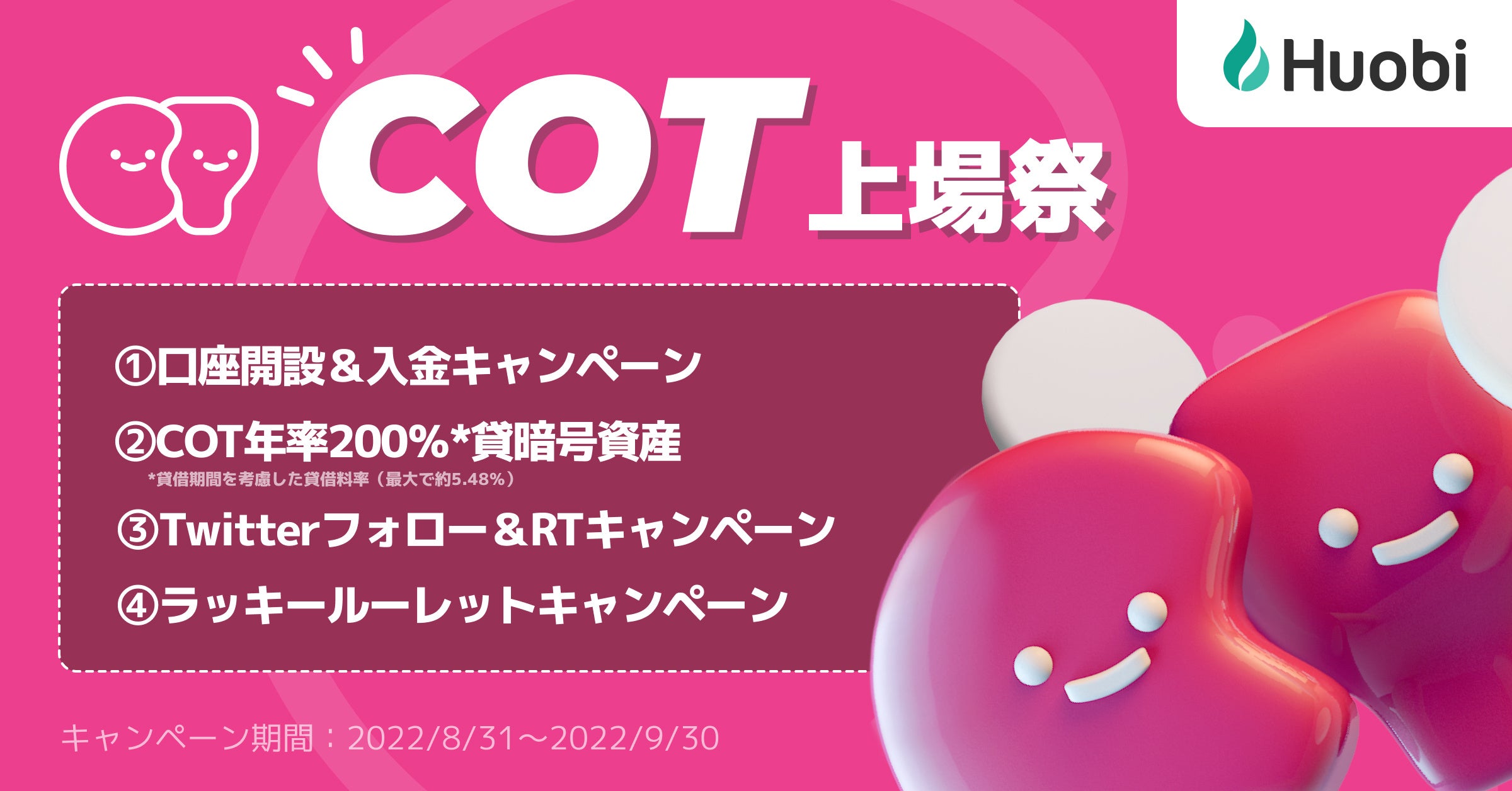 2022年8月31日(水)より、COTを対象とした【特別募集型 年率200%*の貸暗号資産キャンペーン】を開催いたします。