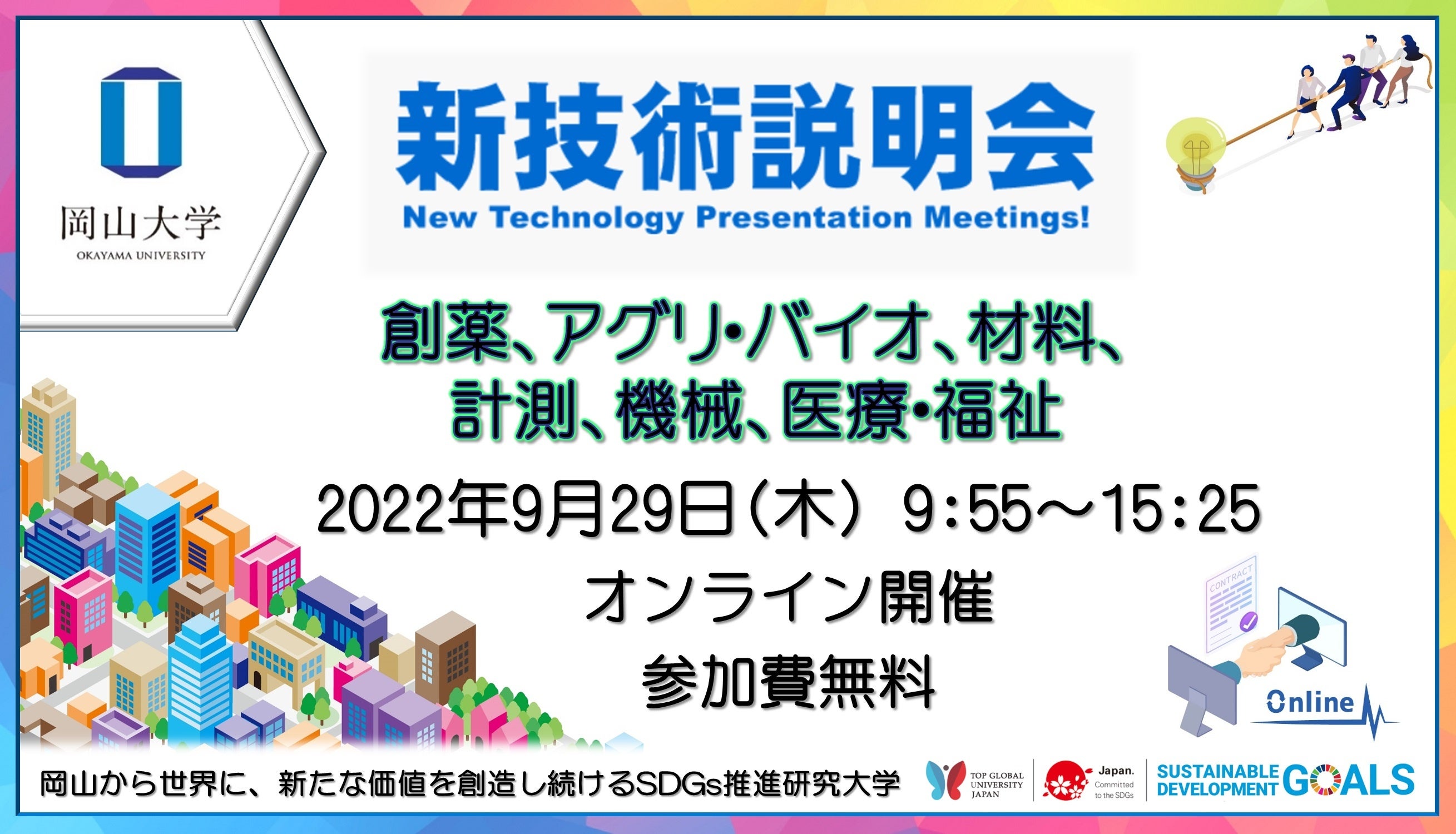 今回、2022年9月29日(木)に「岡山大学 新技術説明会」を新型コロナウイルス感染状況拡大防止の観点から、オンラインで開催(Zoomウェビナー)いたします。