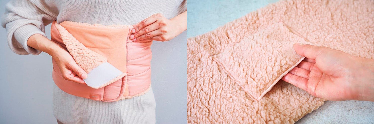 お腹に巻いて、芯からあたたか。面ファスナーで着脱簡単!