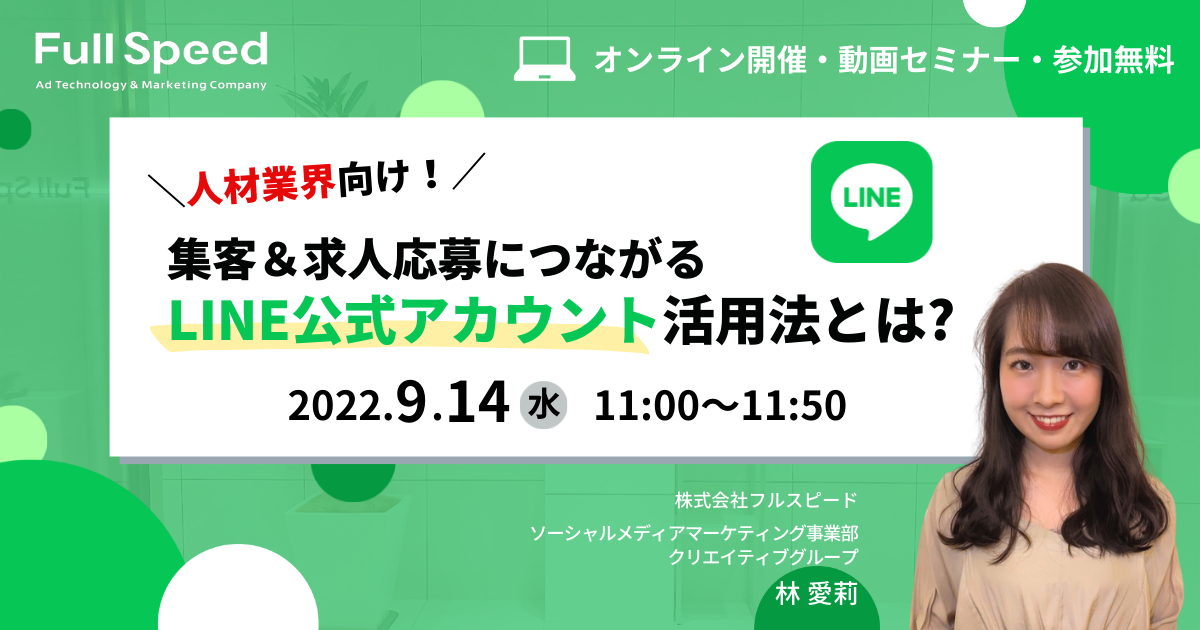 そこで本セミナーでは、LINEのマーケティング活動を最前線で支援している当社より、人材業界向けに企業LINE公式アカウントの運用ノウハウと、ツールを使用したLINE公式アカウントの効果的な活用方法をご紹介します。
