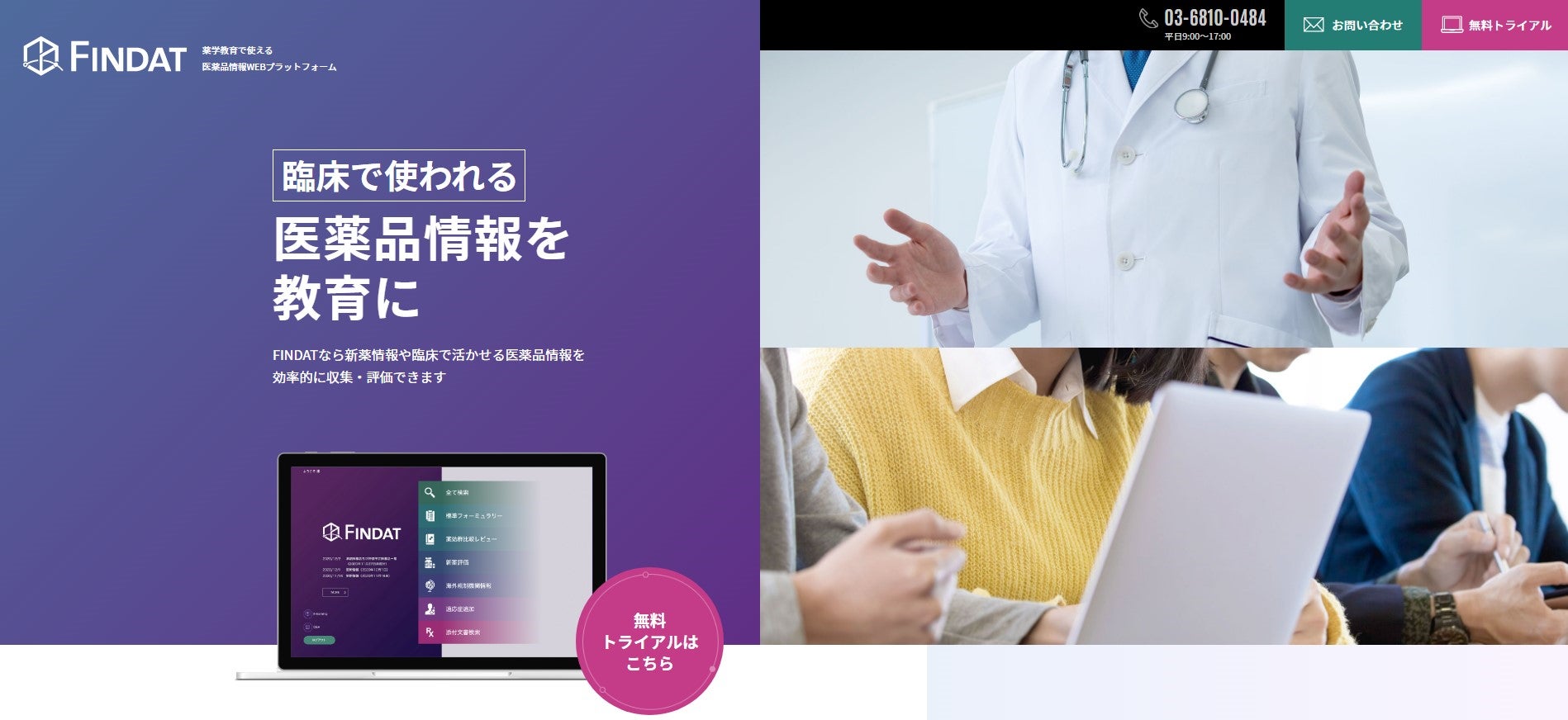 「FINDAT(ファインダット)」は、医療従事者のための医薬品情報WEBプラットフォームです。様々なデータソースや、国内外の各種ガイドラインやグローバルで信頼性の高い有料の二次情報データベースなどから網羅的に収集した医薬品情報を中立的に評価し、ウェブ上でご提供するサービスです。