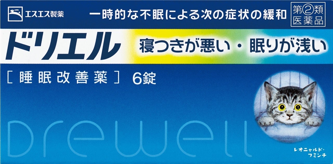 ドリエル、ドリエルEXは、全国の薬局・ドラッグストアでご購入いただける睡眠改善薬です。「寝つきが悪い」、「眠りが浅い」といった多くの現代人が抱える一時的な不眠症状※を緩和することで、生活全体を充実させQOL(Quality of life:生活の質)の向上に貢献いたします。病院で処方される睡眠薬(ベンゾジアゼピン系など)とは異なり、ドリエル、ドリエルEXはOTC医薬品のかぜ薬や鼻炎薬などに含まれる抗ヒスタミン剤の一種、ジフェンヒドラミン塩酸塩を配合しており、その作用で一時的な不眠症状を緩和します。