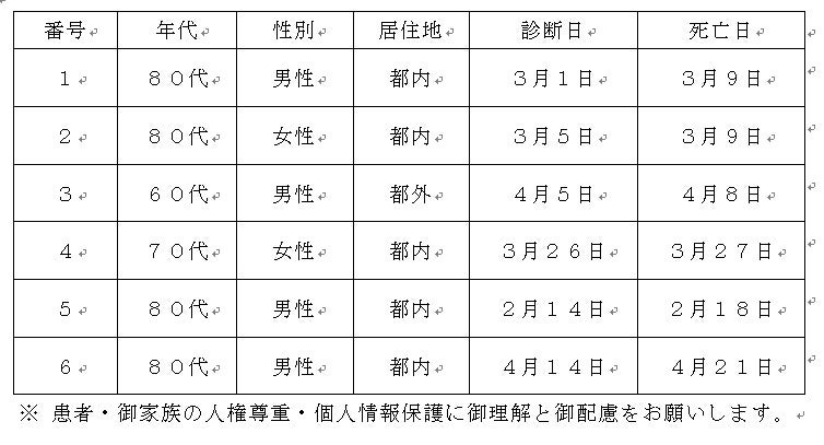 新型コロナウイルスに関連した患者の死亡について business Twitter Facebook はてブ Pocket LINE コピー 2022.05.24 この記事は約1分で読めます。 都内で新型コロナウイルスに感染した方が死亡されましたのでお知らせします。 お亡くなりになった方のご冥福をお祈り申し上げます。